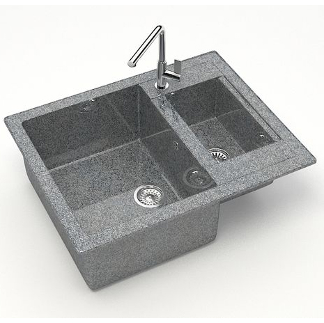 Прямоугольная гранитная мойка с глянцевым покрытием, разработанная для двух чаш с эффективным переливом. В комплект входит все необходимое для установки.