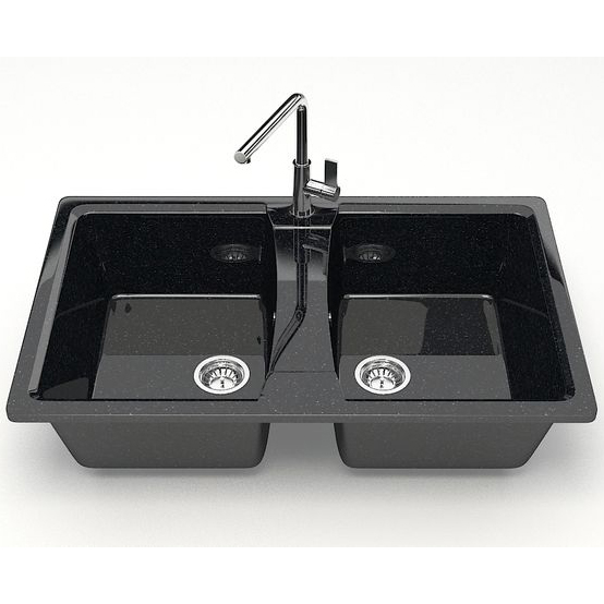 Эта прямоугольная гранитная мойка с глянцевым покрытием в чёрном цвете сочетает элегантность и функциональность, предлагая две чаши с переливом для удобства использования.