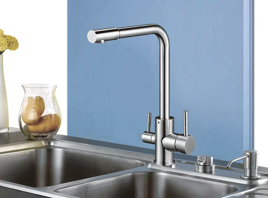 Комбинированный смеситель 2 в 1 из нержавеющей стали. Подключается к фильтру и подает очищенную и обычную воду.
