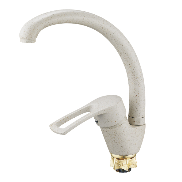 Однорычажный смеситель бежевого цвета. Бесшумный картридж и аэратор для мягкой струи.